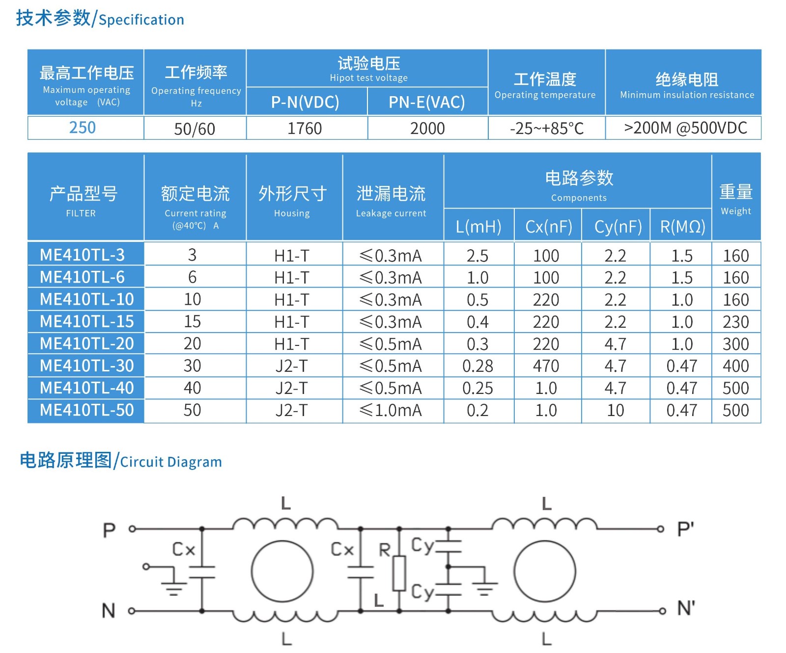 雙節(jié)濾波,共模濾波效果優(yōu)良,泄露電流低,應(yīng)用廣泛,適應(yīng)各種阻抗匹配,對快速瞬變脈沖群 (EFT) 等實 驗具有良好的輔助效果。