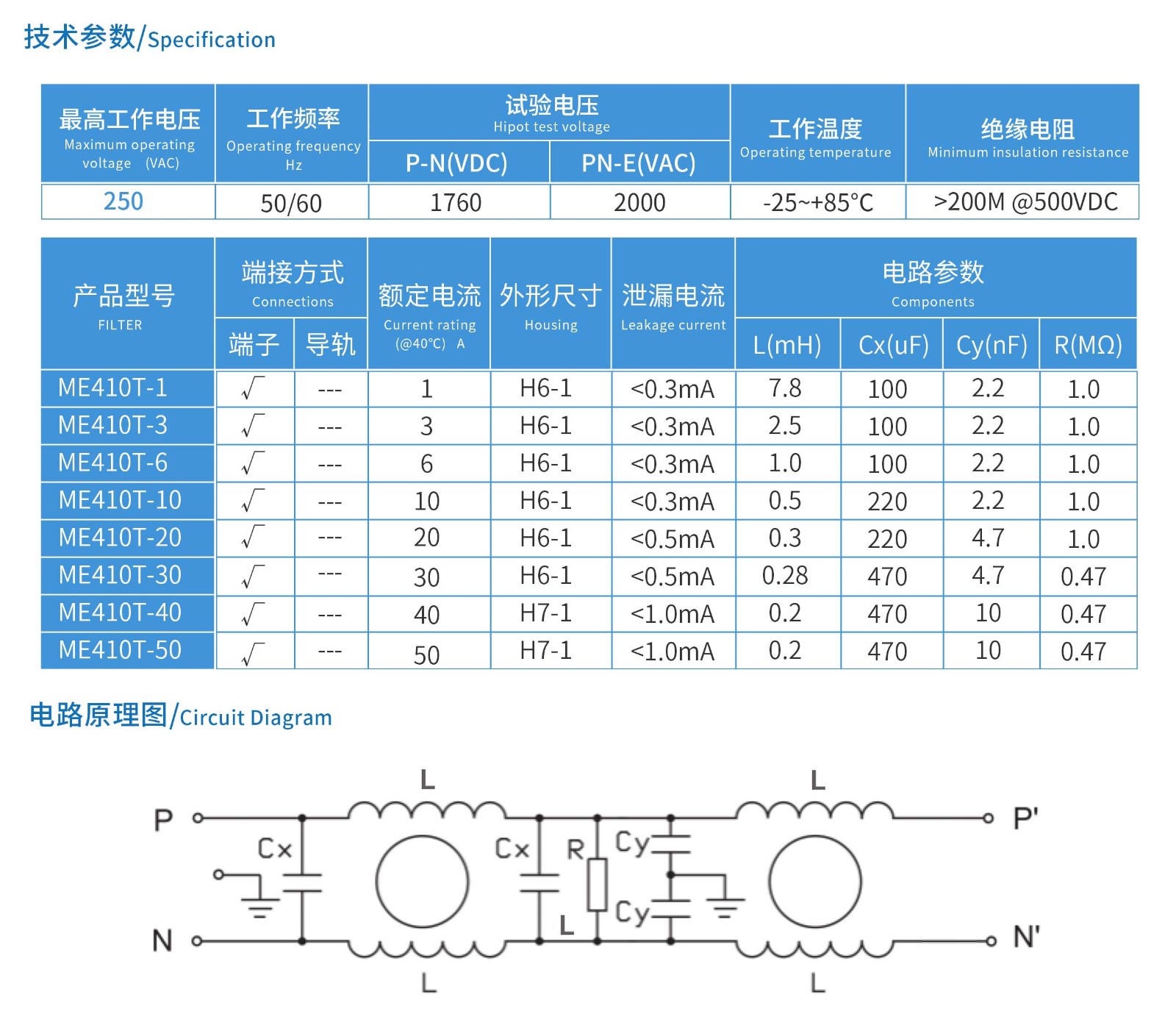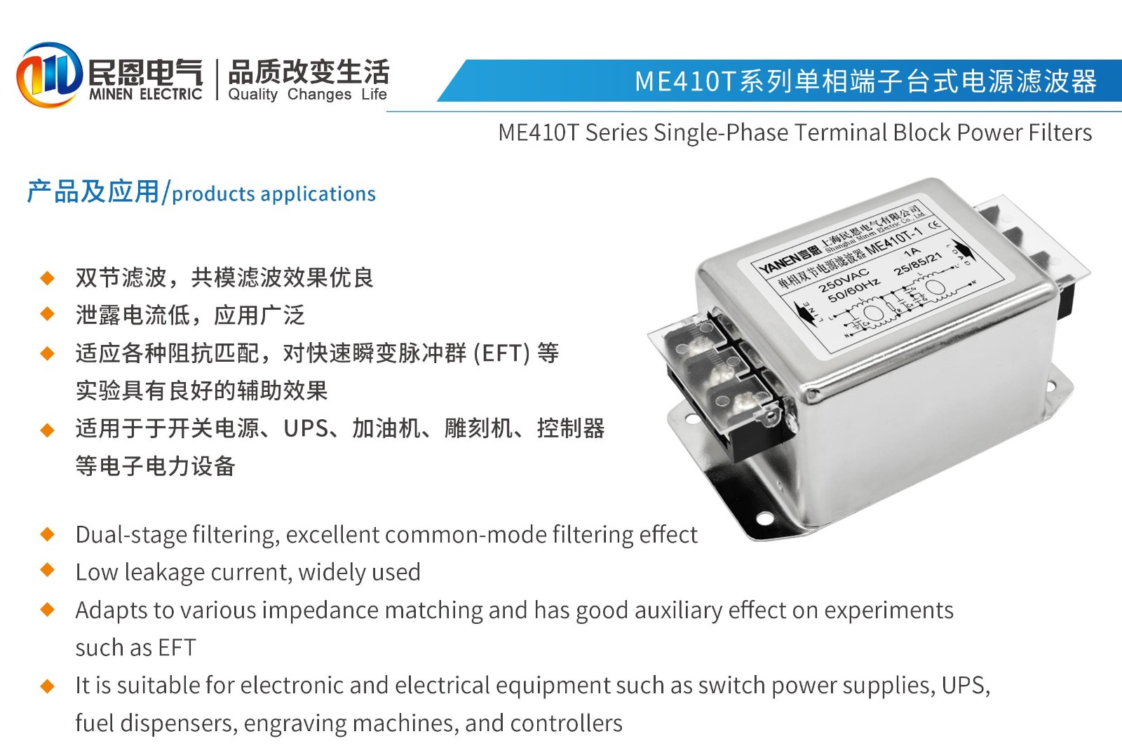 ME410T系列單相端子臺(tái)式電源濾波器