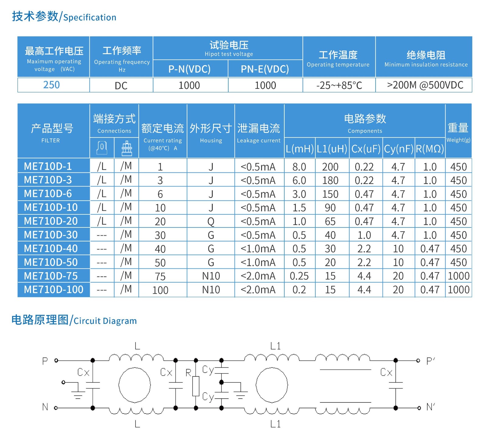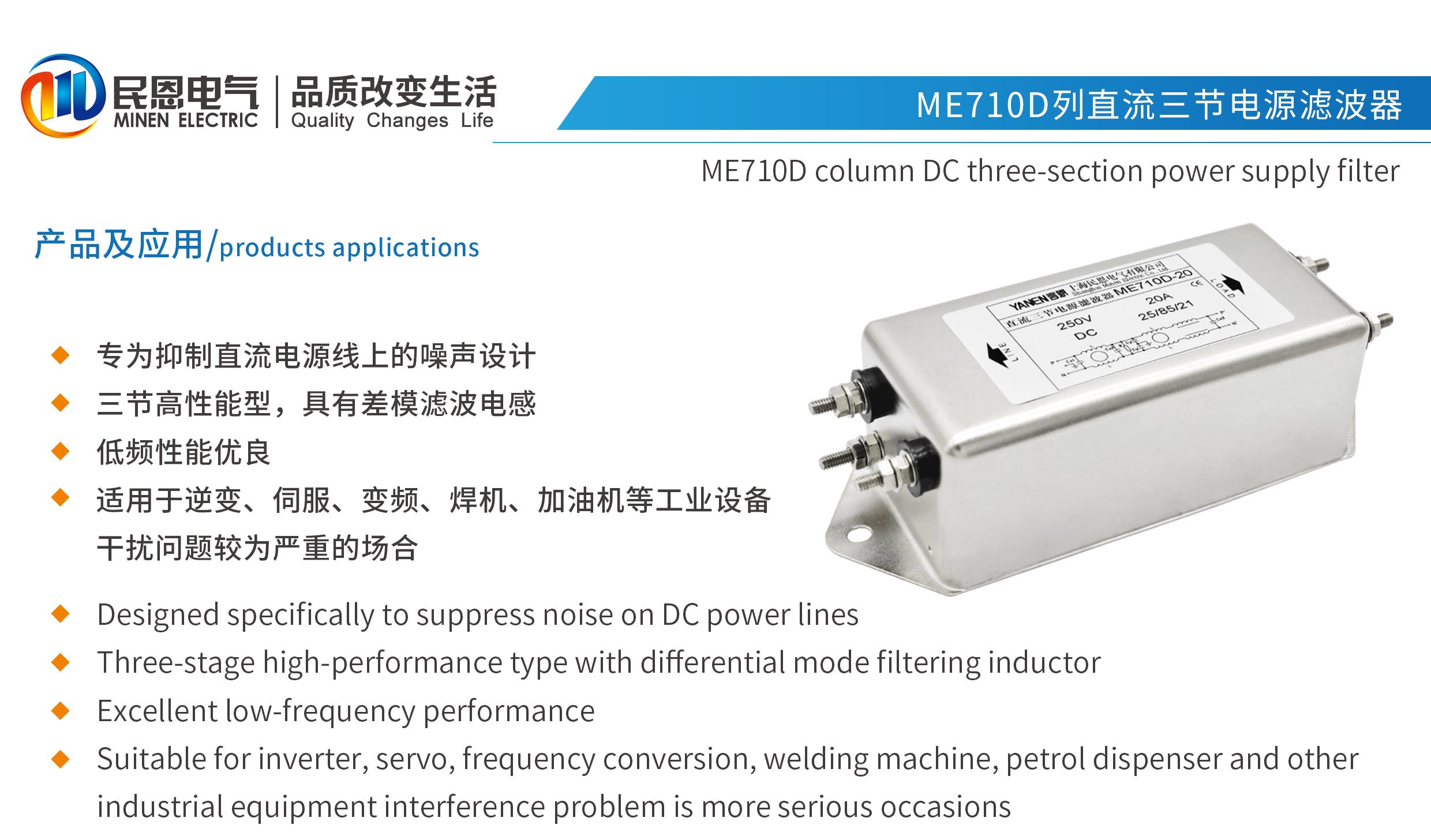 ME710D系列三節(jié)高性能直流電源濾波器