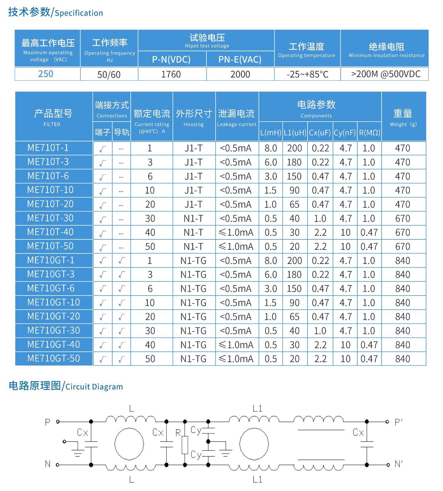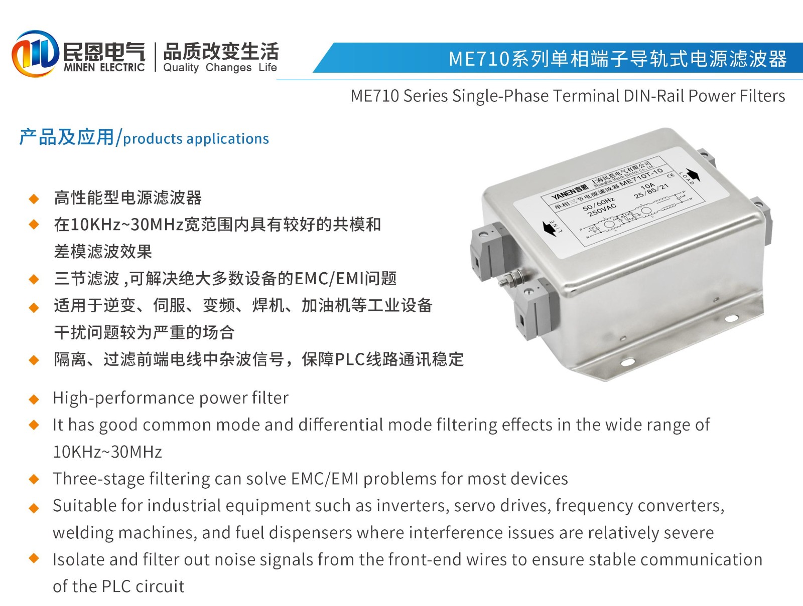 ME710TG系列單相三節(jié)導(dǎo)軌式電源濾波器
