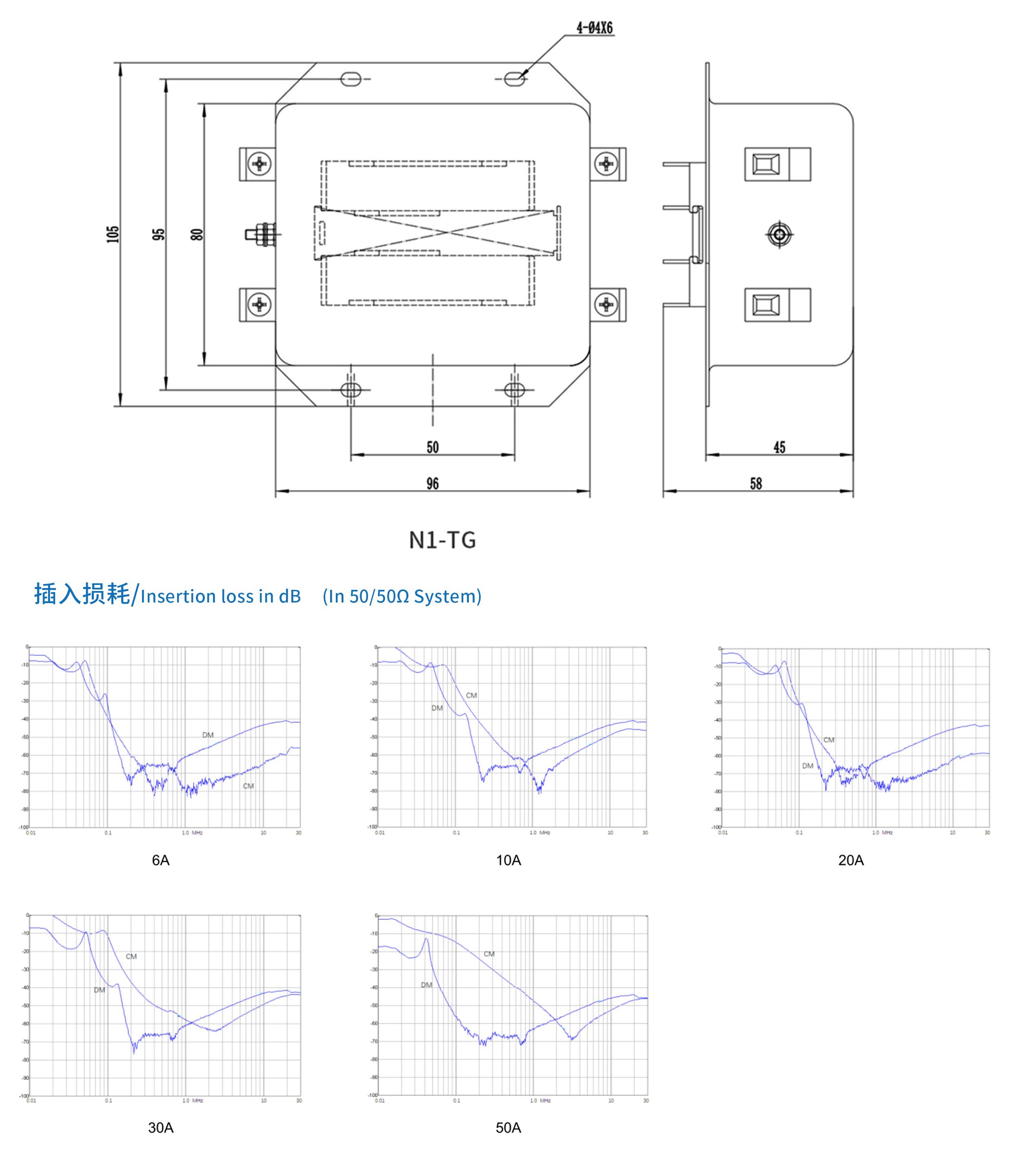 高性能型電源濾波器,在10KHz~30MHz寬范圍內(nèi)具有較好的共模和差模濾波效果,三節(jié)濾波,可解決絕大多數(shù)設(shè)備的EMC/EMI問題