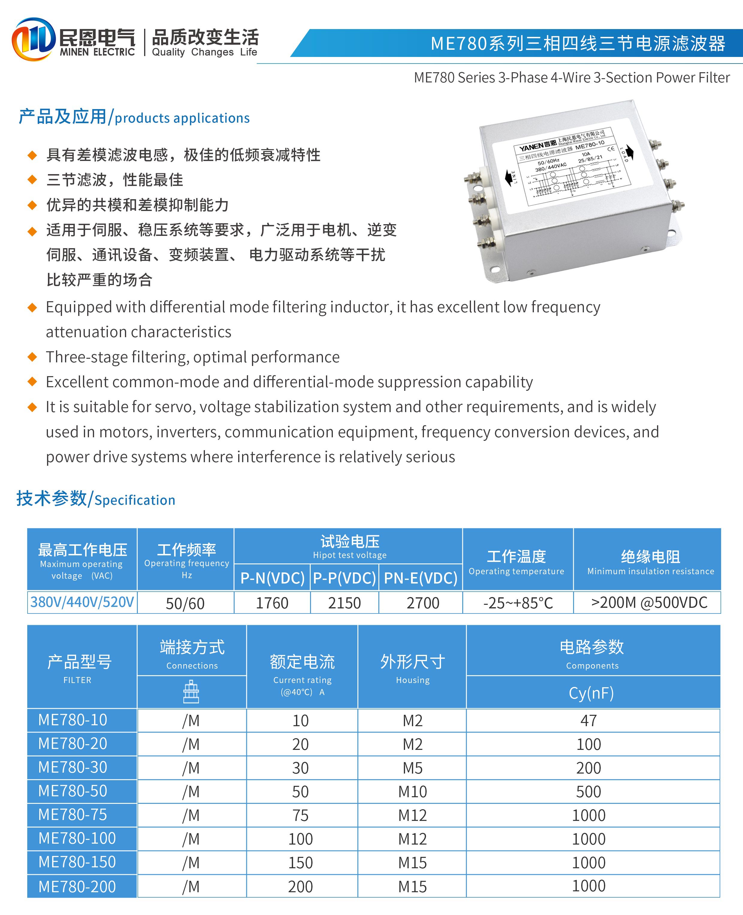 ME780系列三節(jié)三相四線電源濾波器