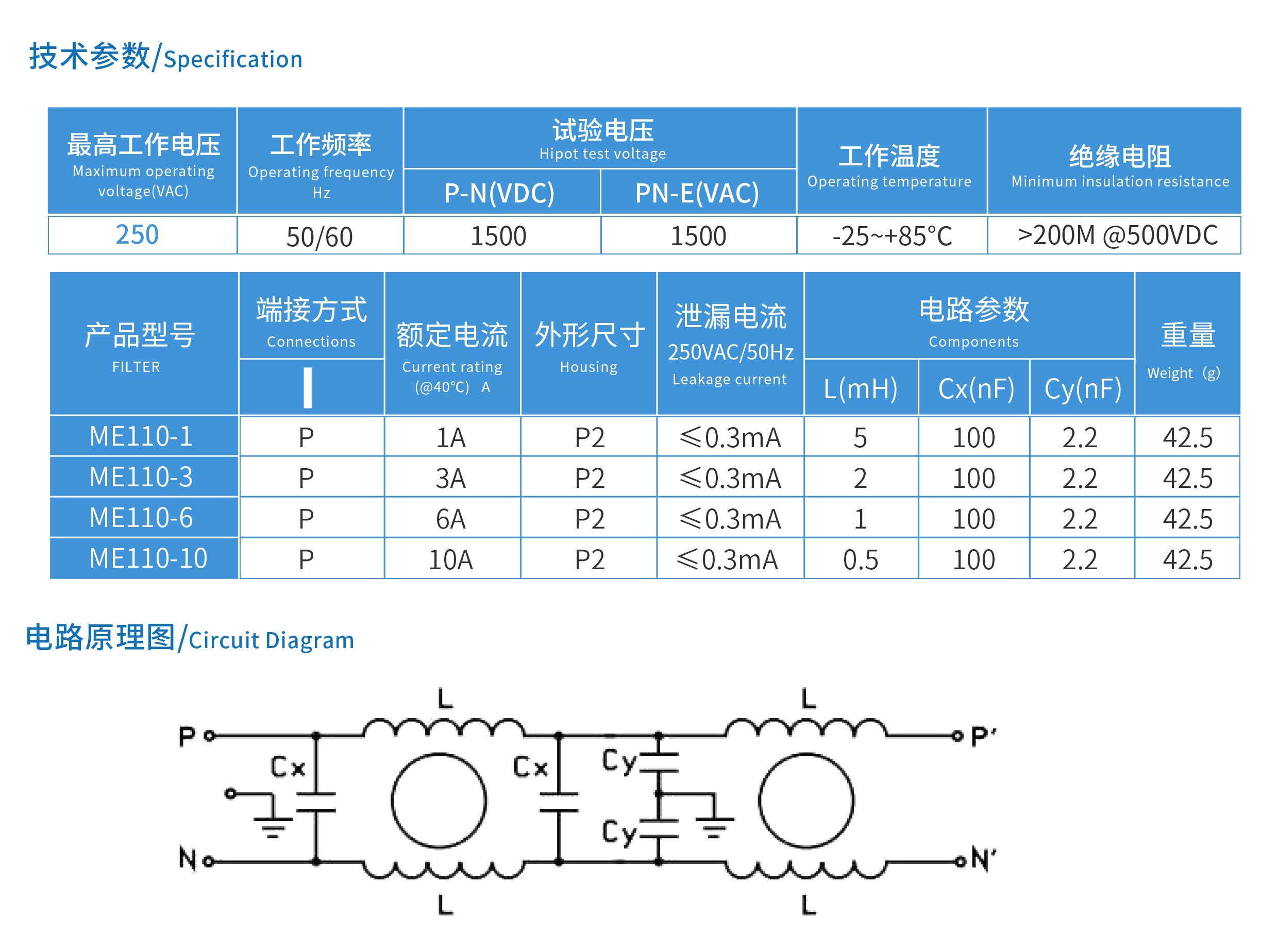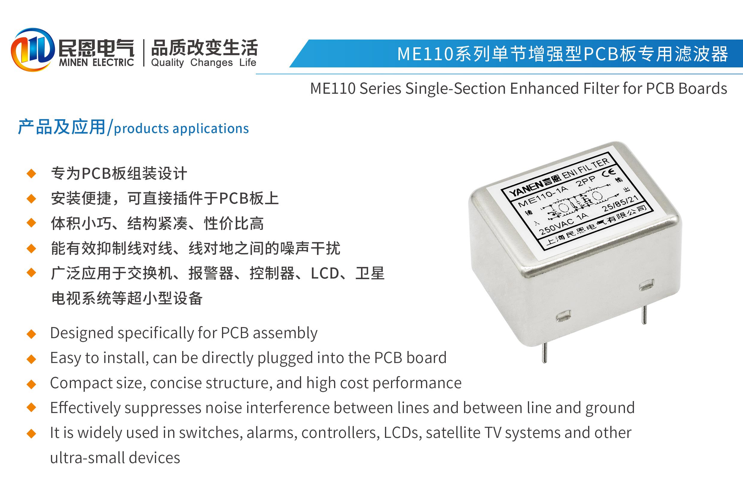 ME110系列單節(jié)增強(qiáng)型PCB板專用濾波器