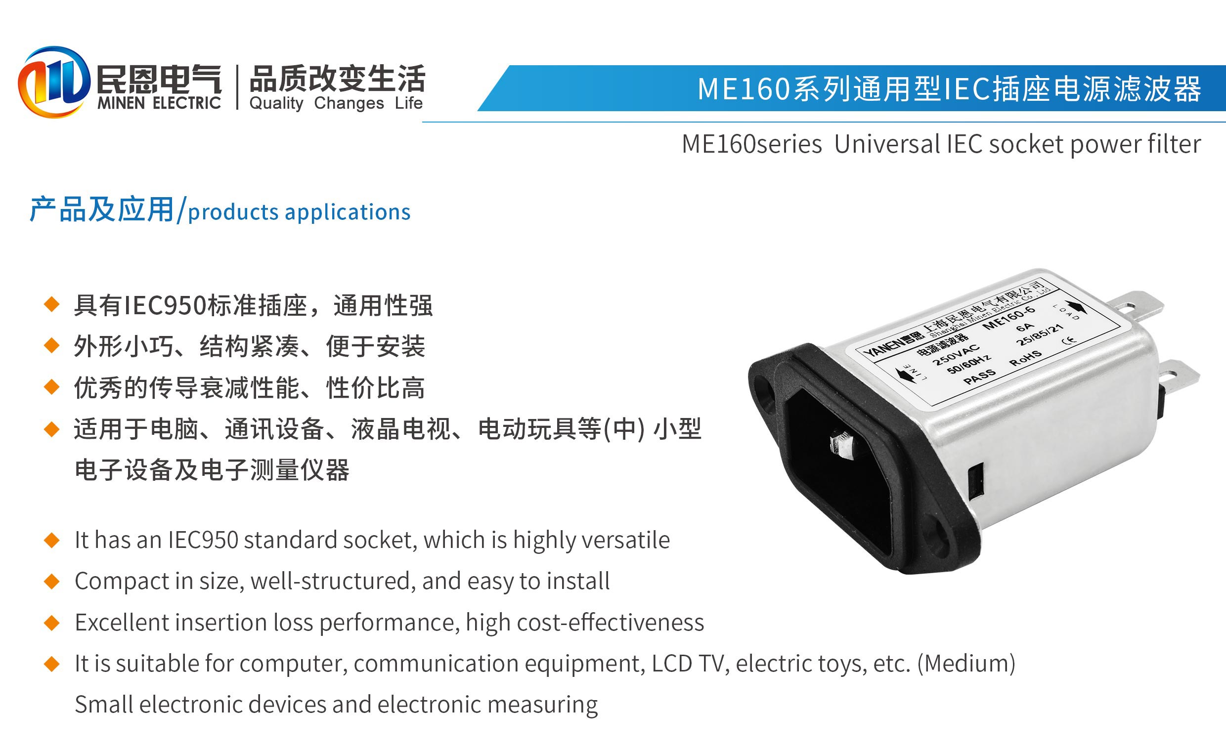 具有IEC950標(biāo)準(zhǔn)插座,通用性強(qiáng),外形小巧、結(jié)構(gòu)緊湊、便于安裝,優(yōu)秀的傳導(dǎo)衰減性能、性價(jià)比高。