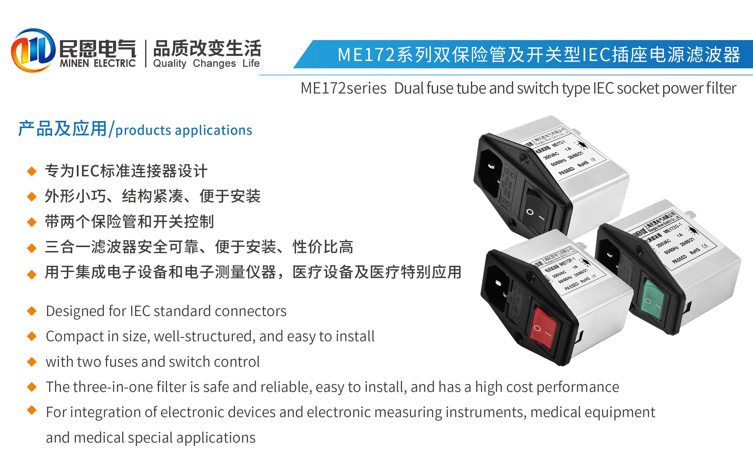 ME172系列雙保險(xiǎn)管及開關(guān)型IEC插座電源濾波器