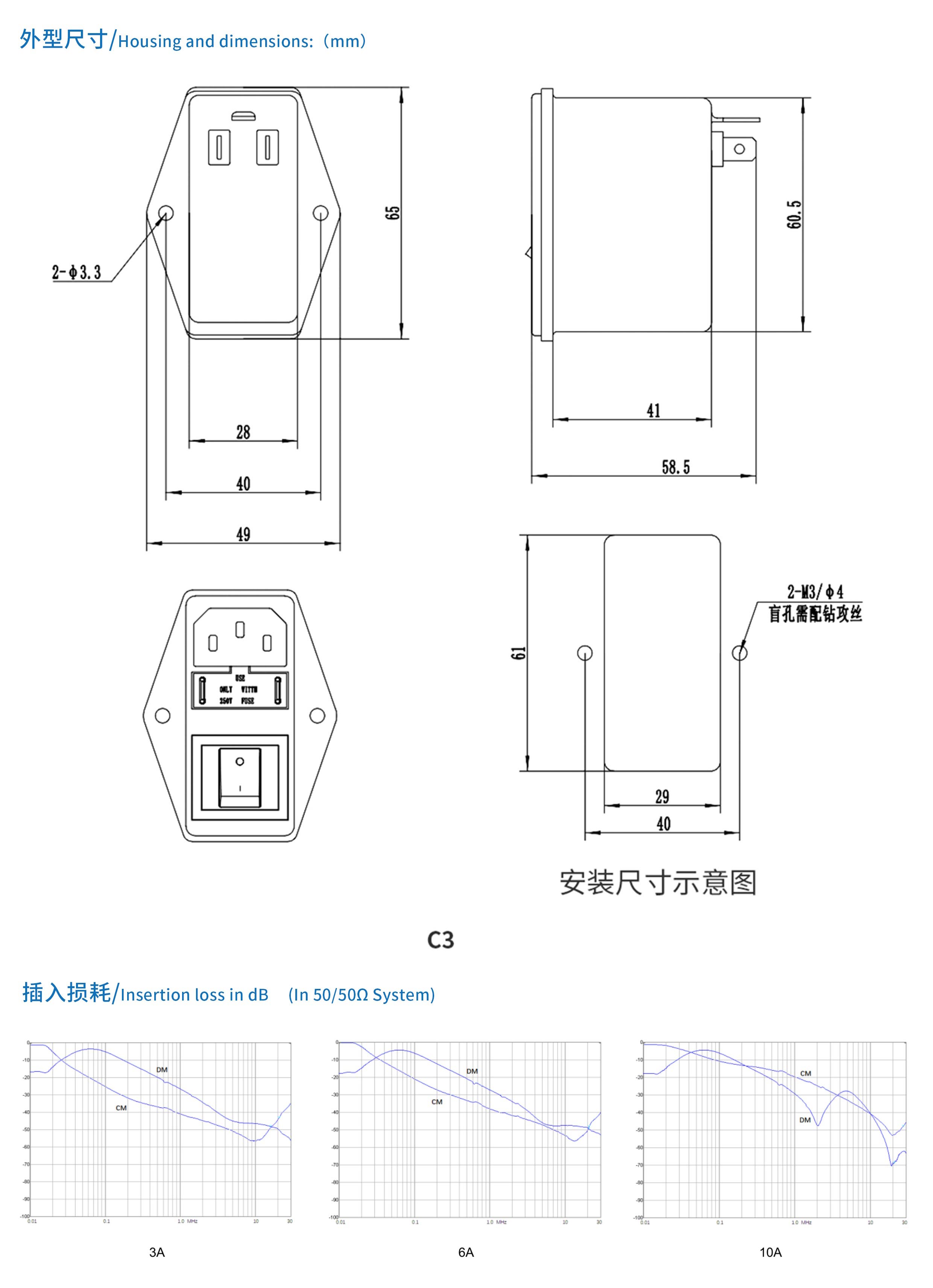 專為IEC標(biāo)準(zhǔn)連接器設(shè)計(jì),帶兩個(gè)保險(xiǎn)管和開關(guān)控制,外形小巧、結(jié)構(gòu)緊湊、便于安裝,三合一濾波器安全可靠、便于安裝、性價(jià)比高