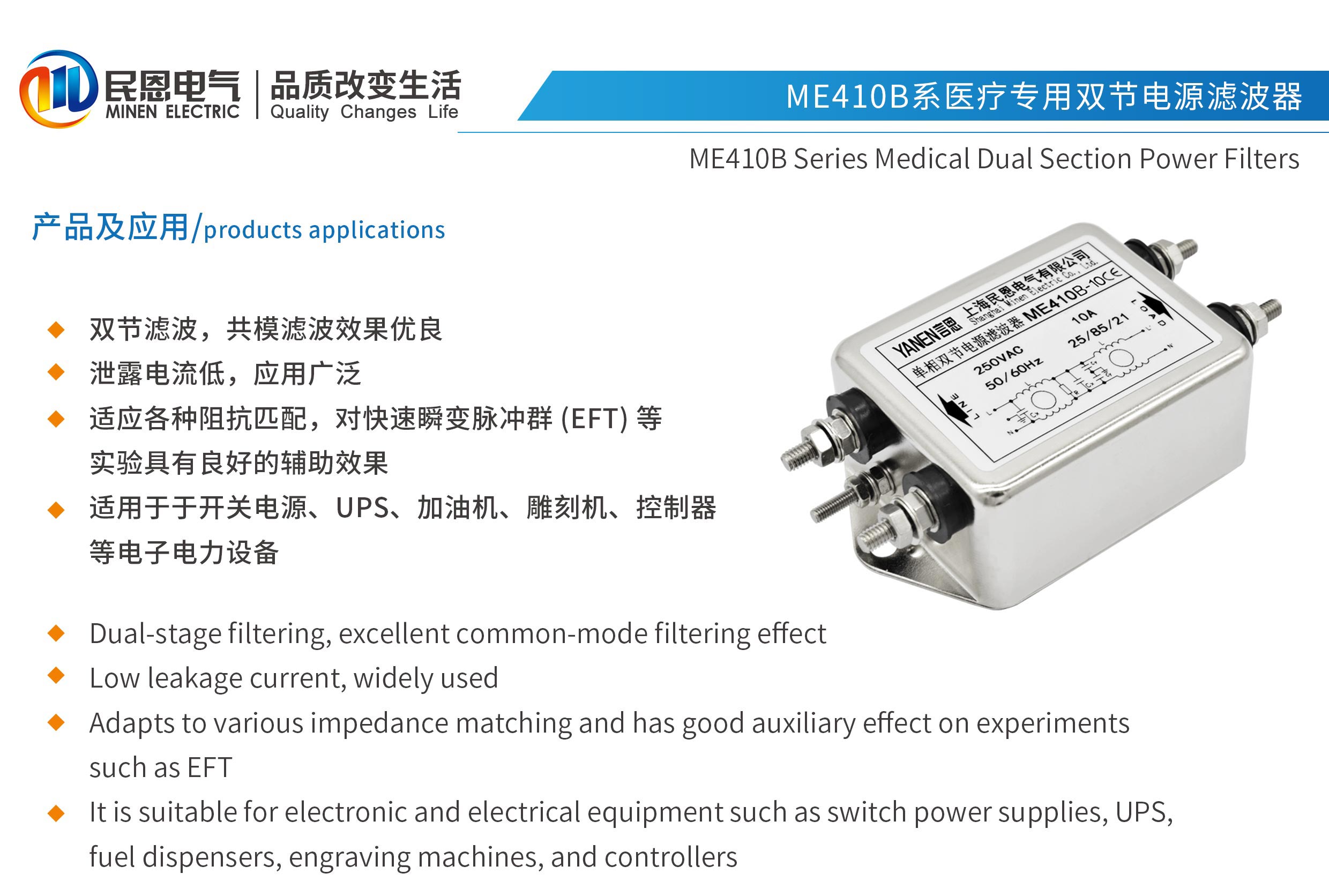 ME410B系列醫(yī)療專用雙節(jié)電源濾波器