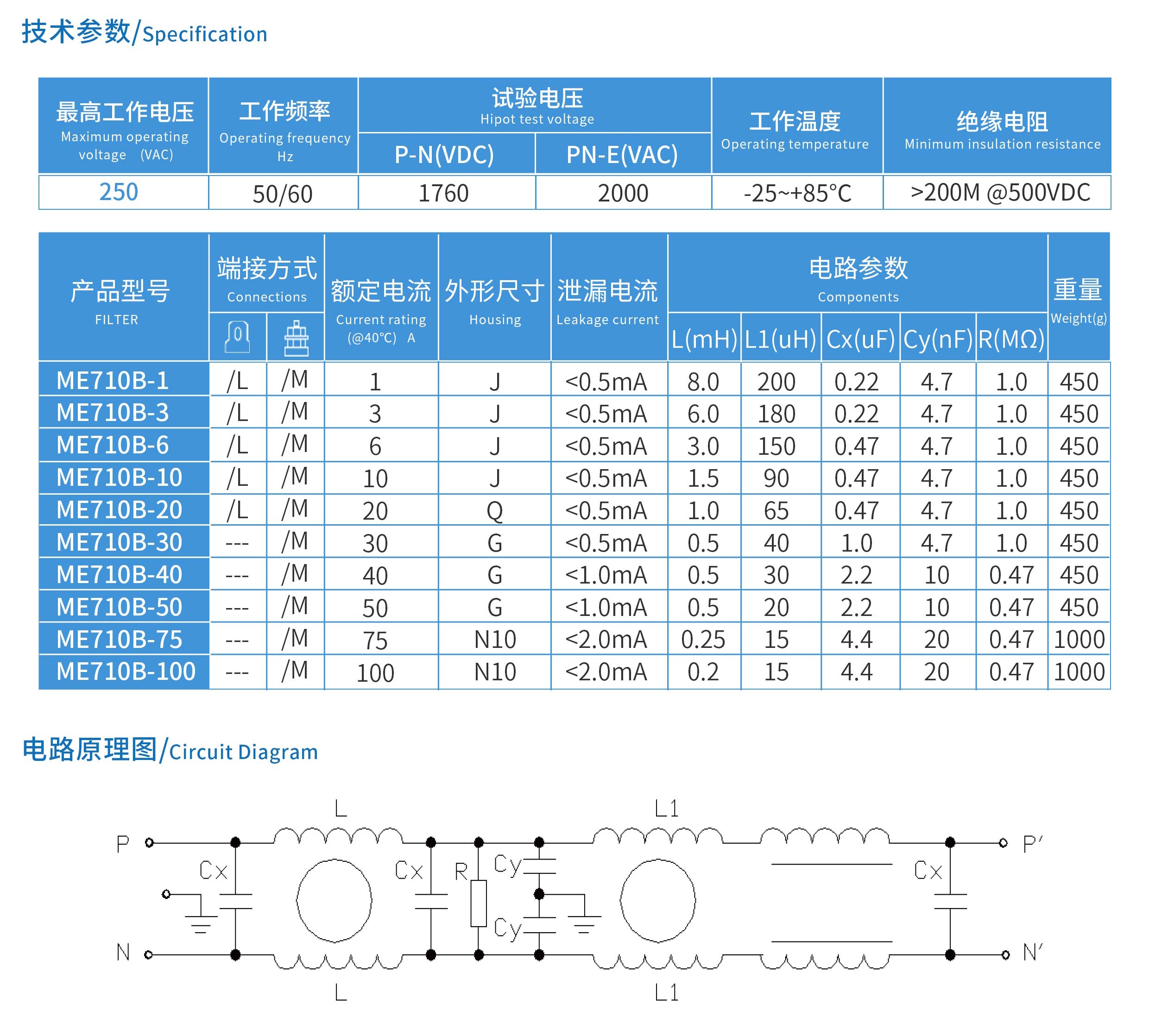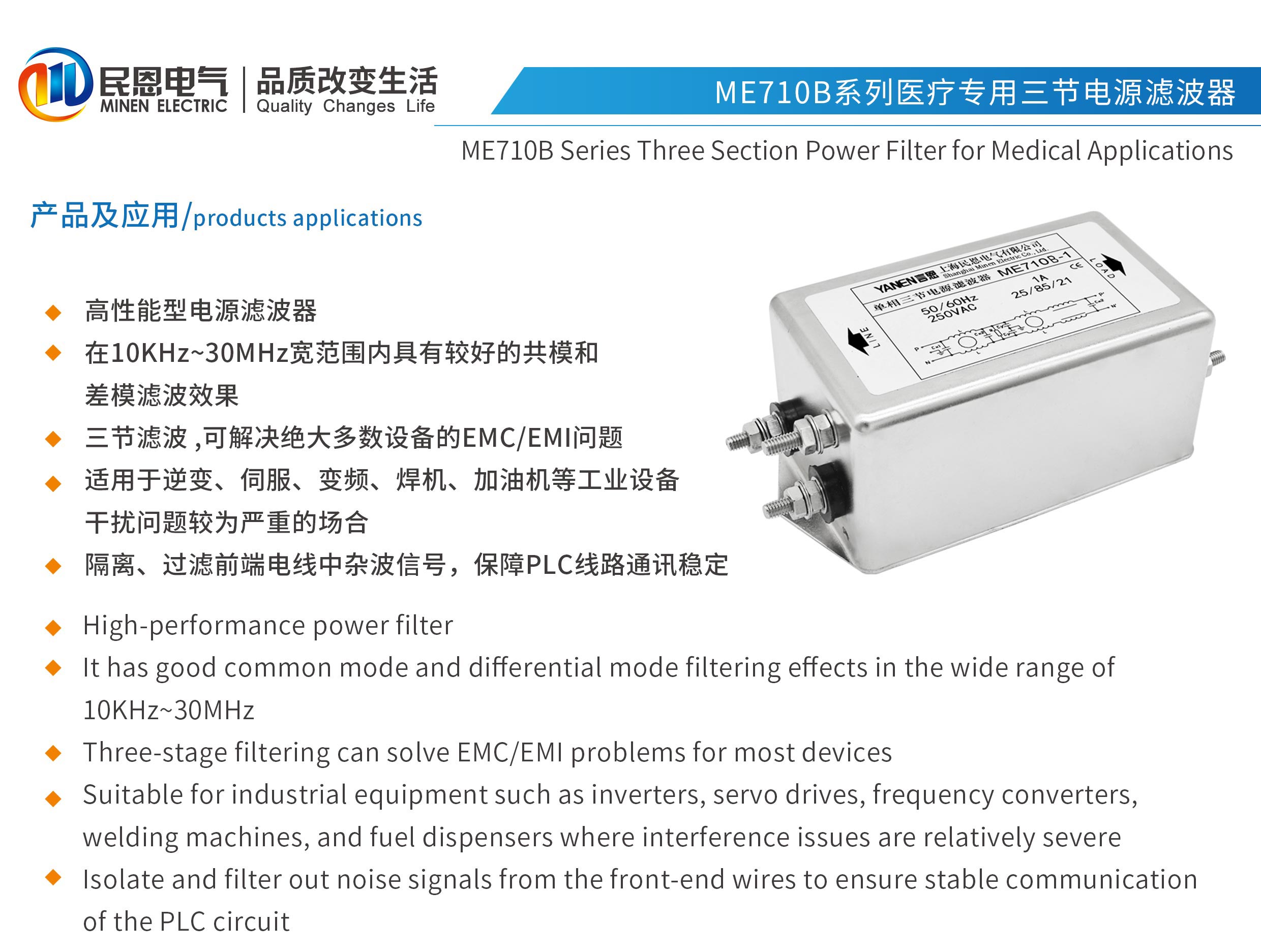 ME710B系列醫(yī)療專用三節(jié)高性能型電源濾波器