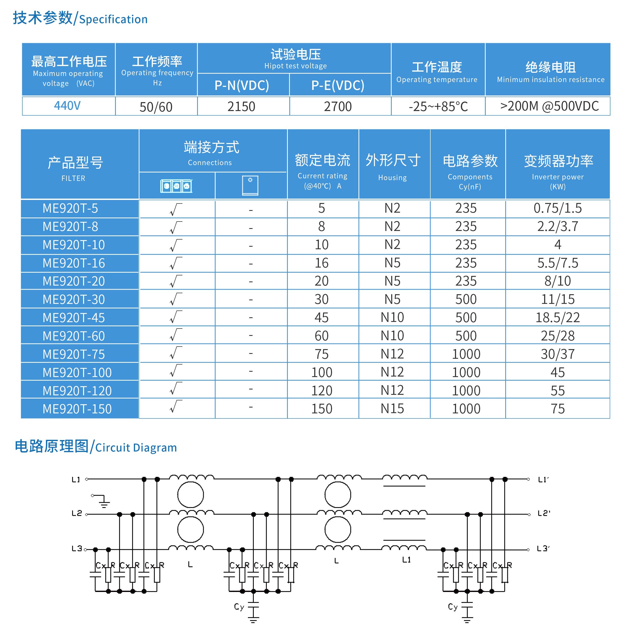 ME920T系列變頻器專(zhuān)用輸入EMC濾波器