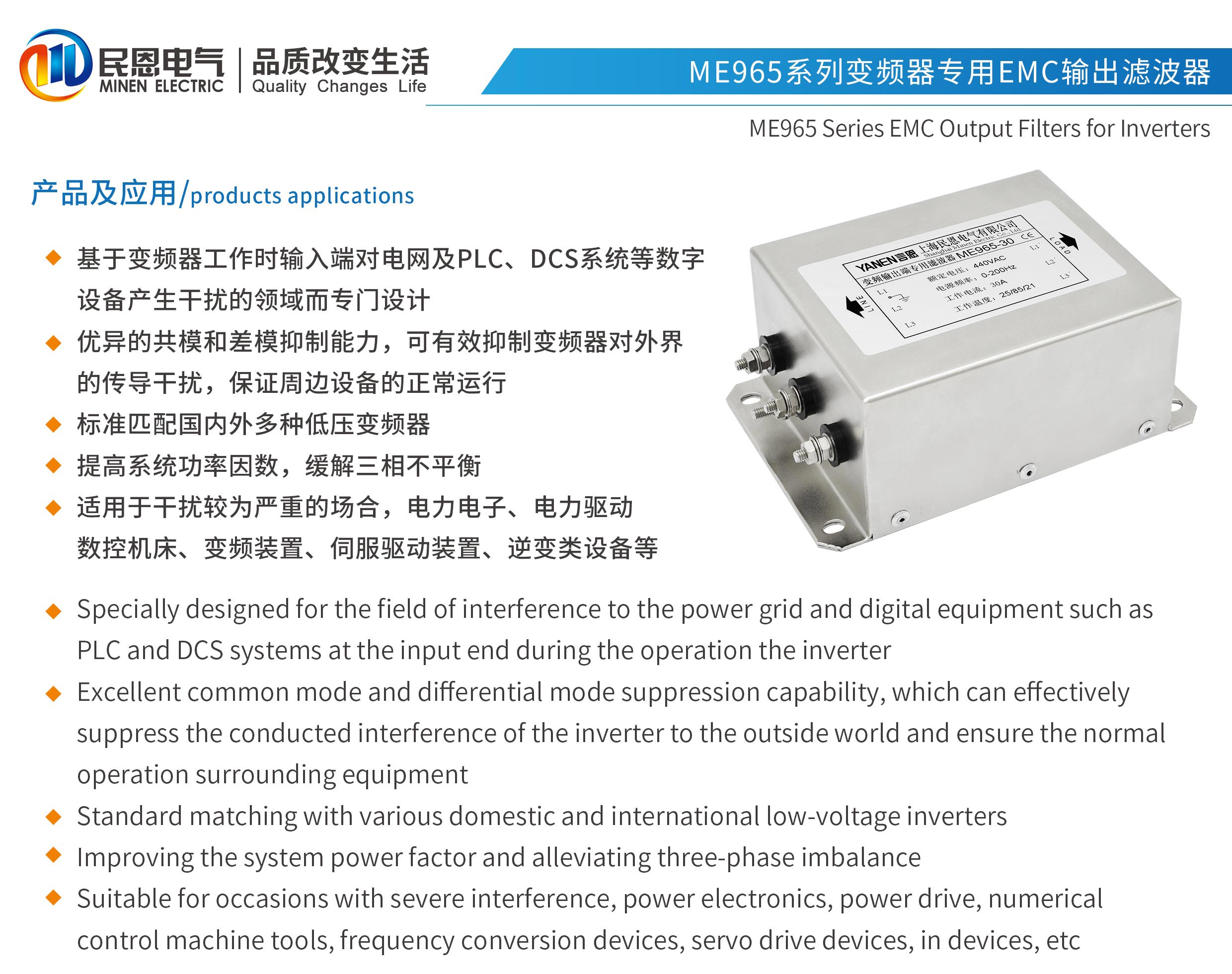 ME965系列變頻器專用輸出EMC濾波器
